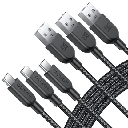 GUSGU USB A to C Charging Cable [3-Pack, 6ft] Fast Charging: 30W power for quick charging—full charge in under an hour for iPhone 15 and Galaxy S23. Data transfer up to 480Mbps while charging. Safety & Durability: Rigorously tested for safety; certified by ETL, RCS, FCC, CE, ROHS. High-strength nylon braided design withstands 90,000 bends—pet-proof and resistant to wear. Wide Compatibility: Works with iPhone 15, iPad Pro, MacBook, Galaxy S series, and more USB-C devices. Convenient Length: 6ft long for easy use away from power sources. Included: 2 x USB C fast charging cables. Reliable, safe, and built to last!