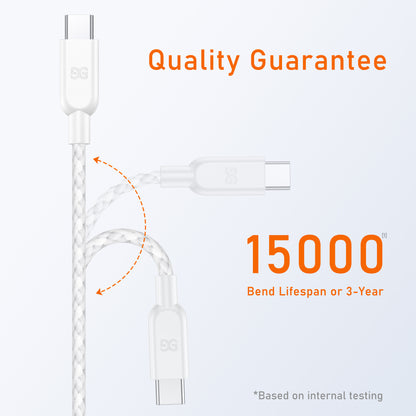 GUSGU USB C to C Charging Cable [2-Pack, 6ft] 60W Nylon Braided USB-C Charger Cable, White